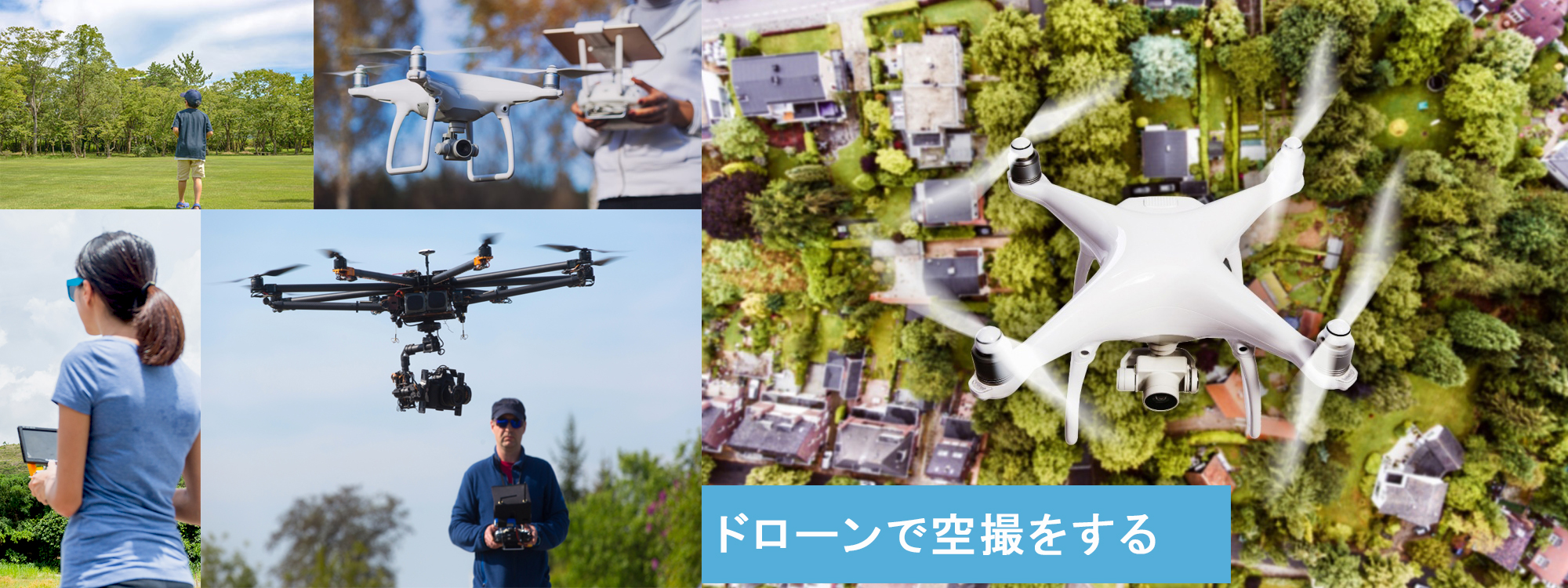 また、セスナによる航空写真に比べて遥かに安価で利便性も高いことから、最近では企業のHPや広告、パンフレット、学校や企業の記念行事などでも幅広く使用されています。